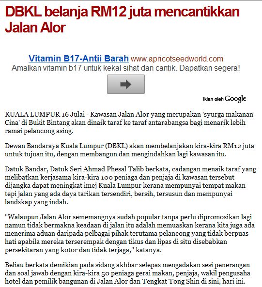 lagi? Ya.. Walaupun mereka yang berNIAGA di Jalan Alor itu TIDAK ada