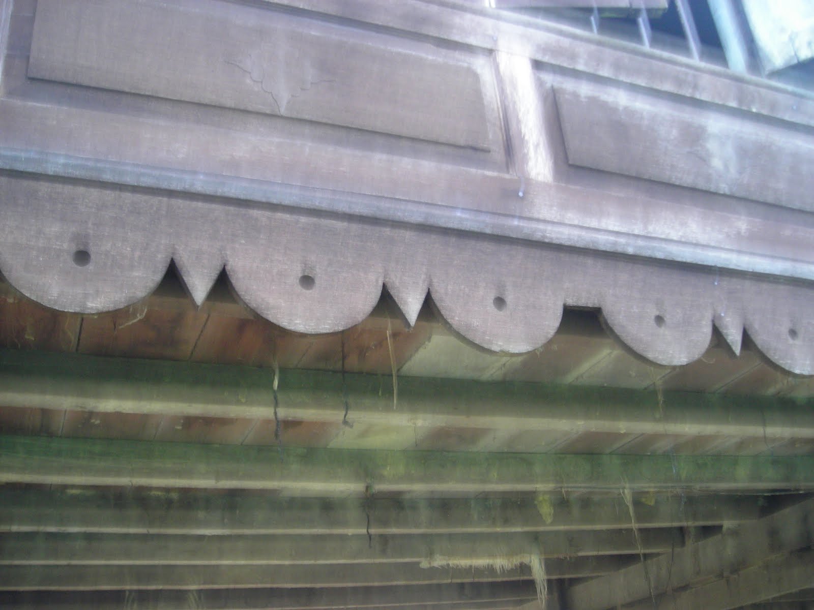 Seni ukiran kayu di bahagian atas tingkat bermotifkan bunga-bungaan dan corak geometri. Berfungsi sebagai lubang udara dan kemasukan cahaya matahari |